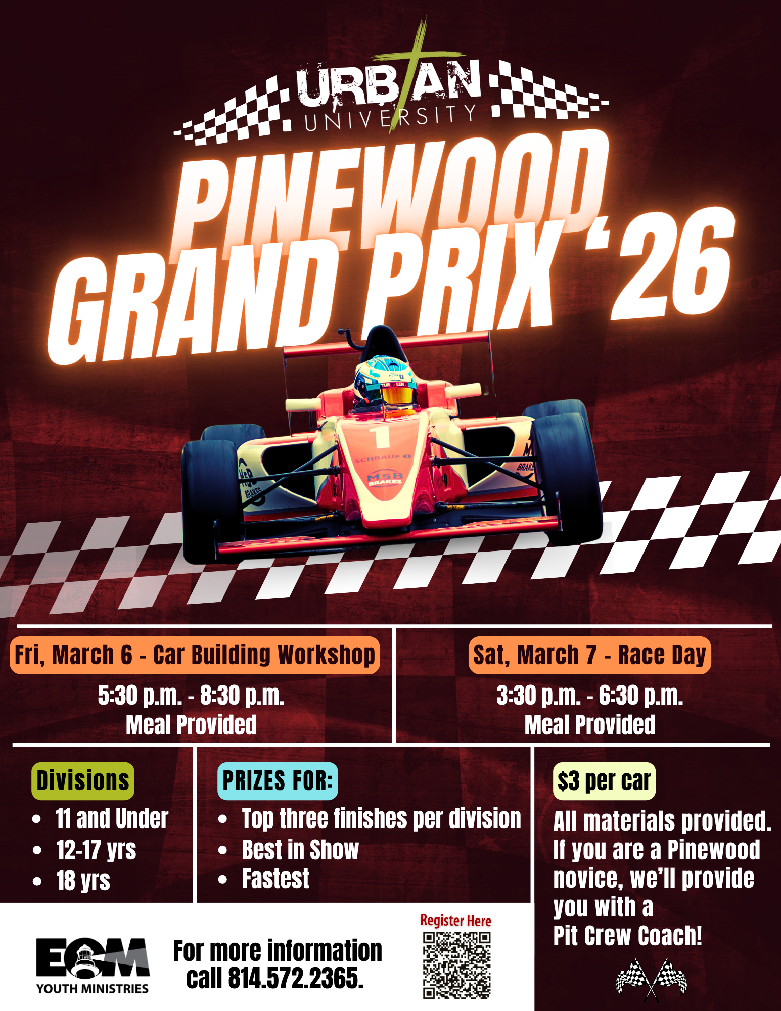 Your family is invited to rev up for Urban University’s 3rd Annual Pinewood Grand Prix!